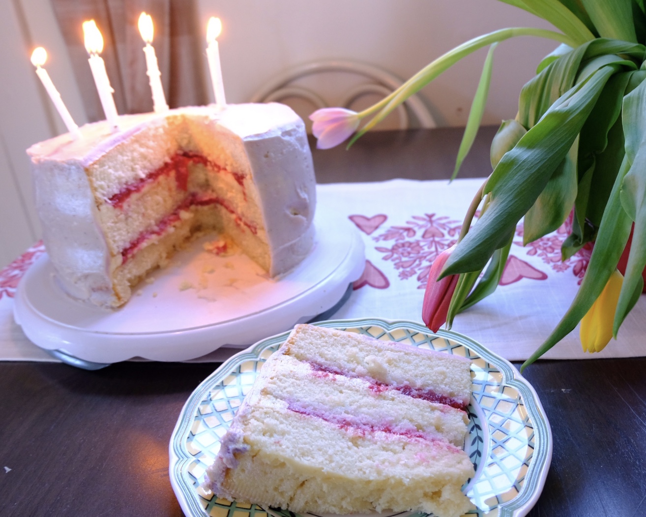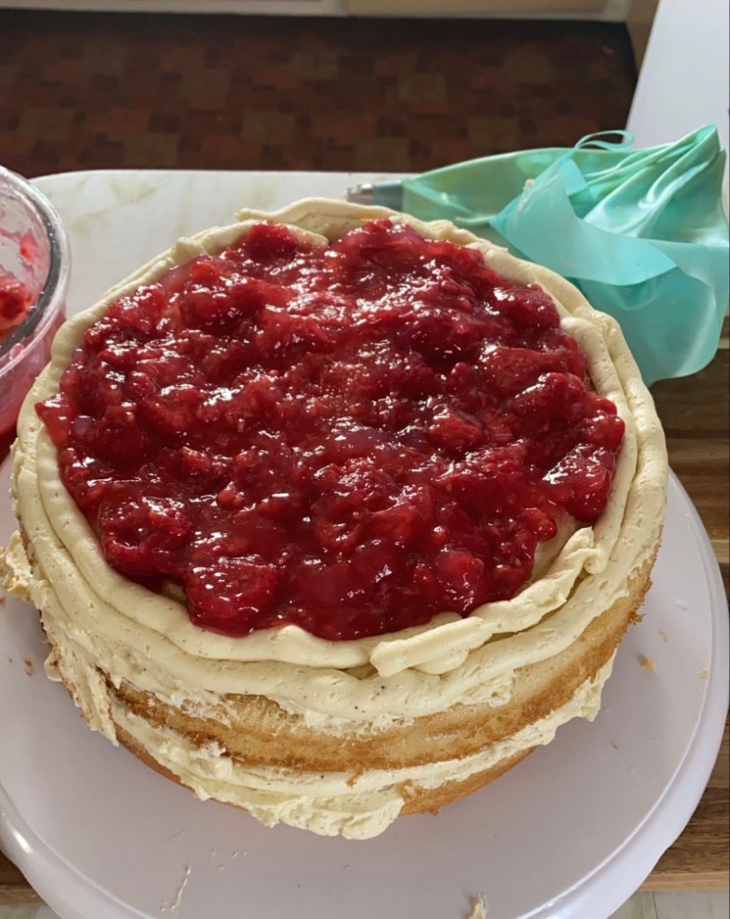 Quarantine Birthday Cake aka Bourbon Buttermilk cake with Raspberry Bourbon Filling and German Buttercream